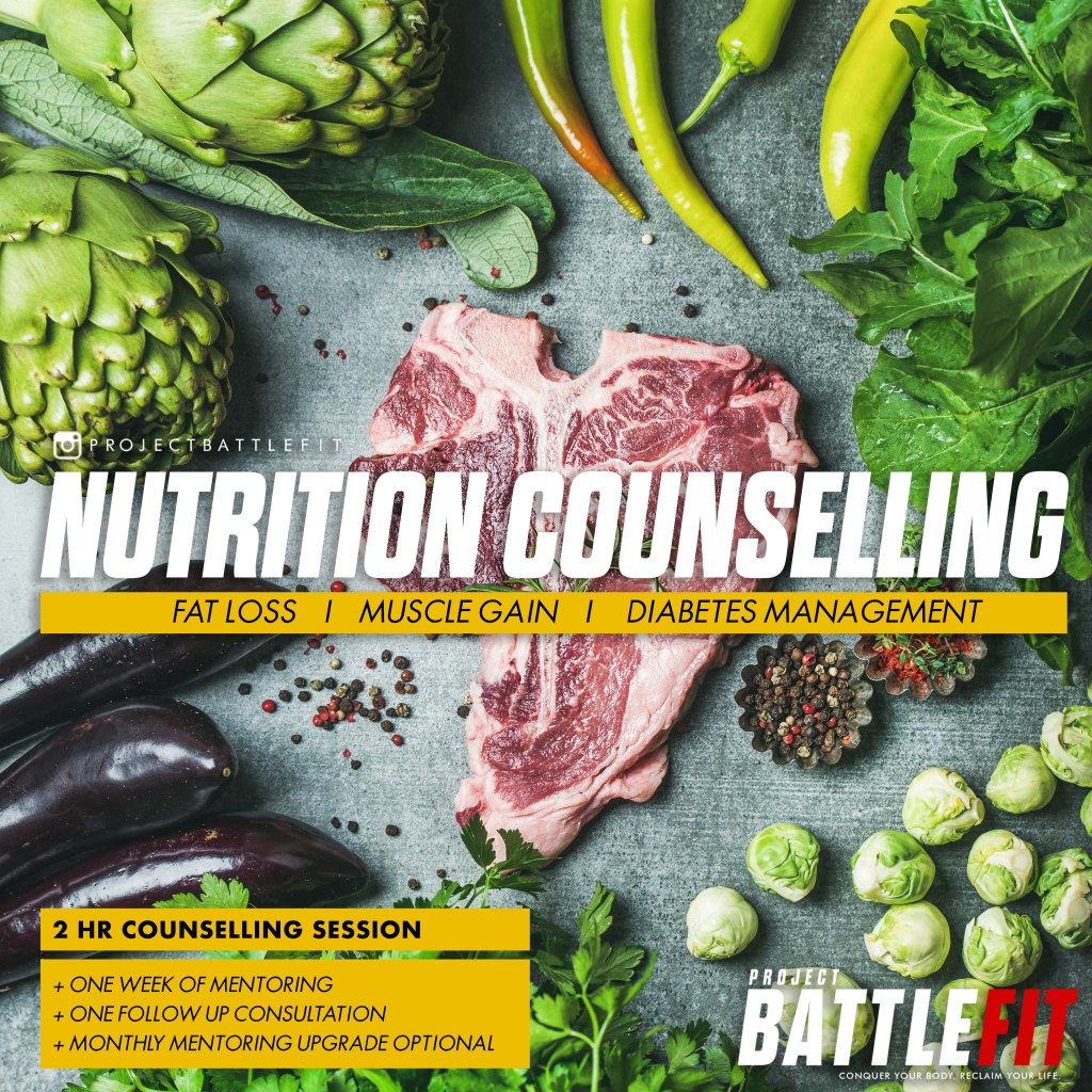 Project Battlefit NUTRITION COUNSELLING is available in a single counselling session option for those just starting off on their fitness or wellness journey.